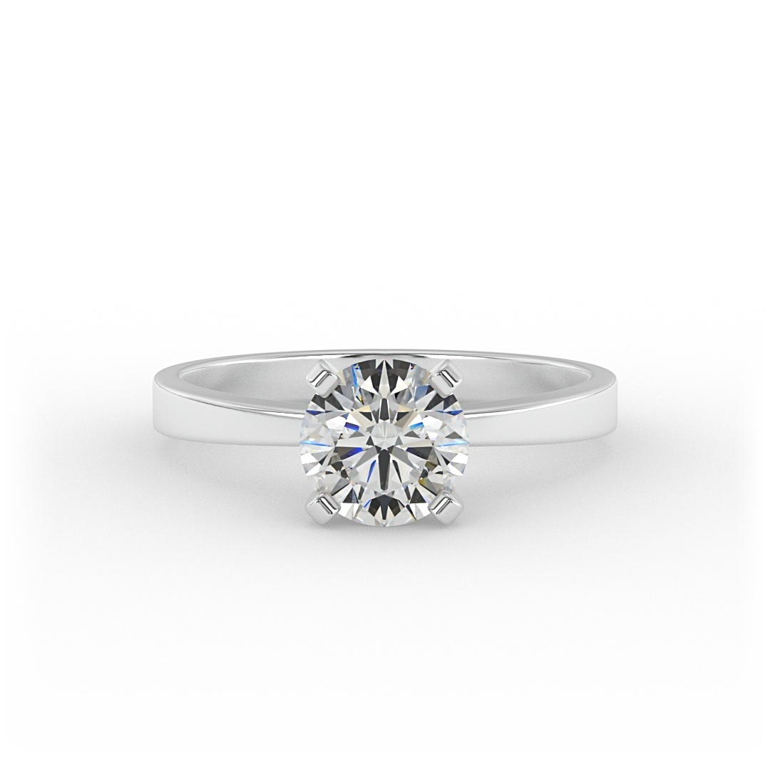 Delicate solitaire engagement ring. Classic ring with a central round diamond. White gold engagement ring and also available in yellow gold and rose gold.