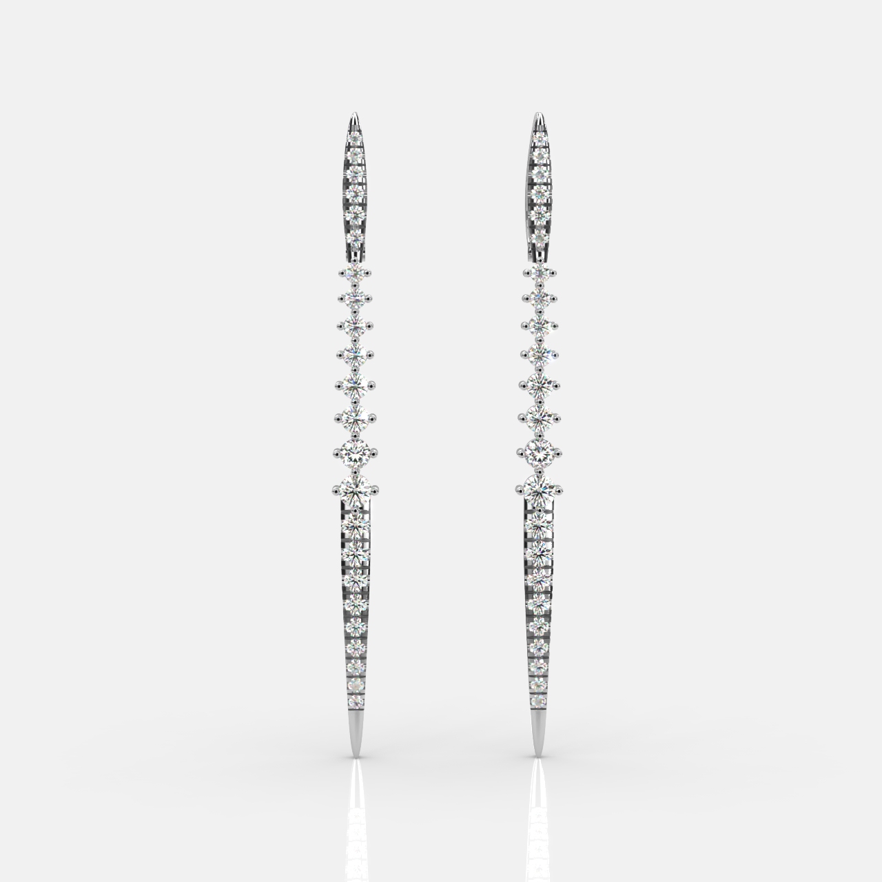 Dangling diamond earrings with a unique and delicate design, studded with shining diamonds throughout. The long earrings give an elegant and impressive look and are suitable for special events as well as luxurious everyday wear. Their classic and clean design guarantees that they will attract the eye and radiate luxury and nobility. You can order the earrings in white, yellow or red gold, depending on your personal preference.